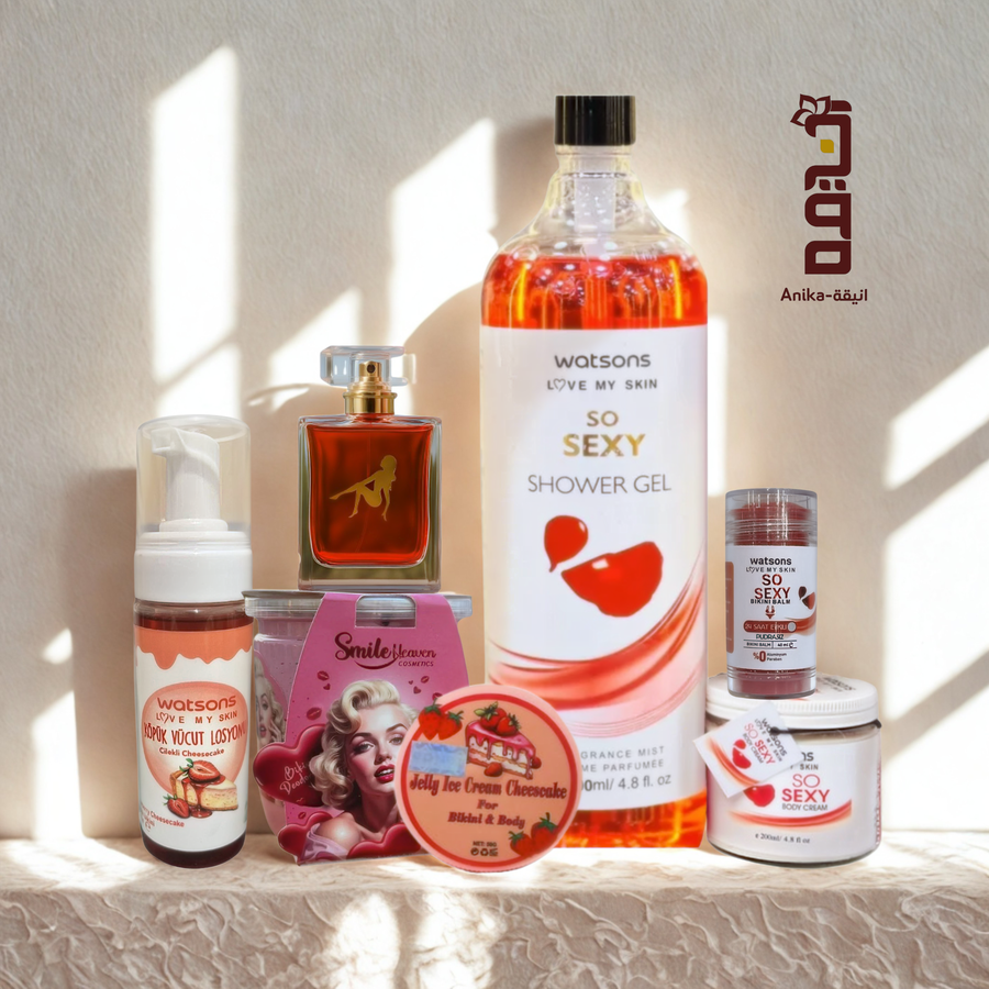 مكونات البوكس: بكيني باتر بكيني بالم so sexy شاور so sexy بادي كريم so sexy بادي جليتر تشيز كيك غسول تشيز كيك برفيوم الاثارة